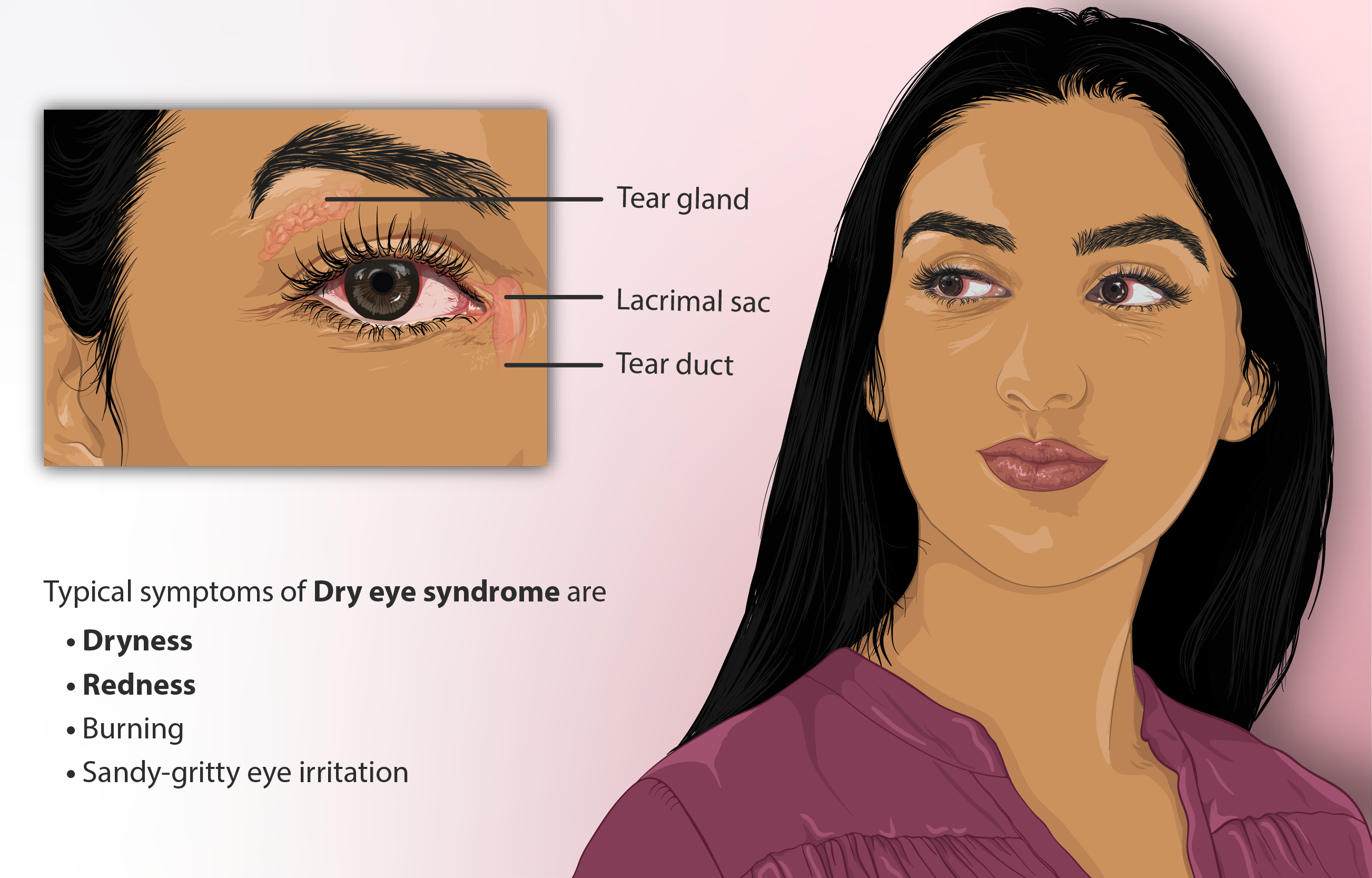 날씨 변화로 인한 때때로 안구 건조 증상은 보통 걱정할 필요가 없다. 여러분은 보통 밖에 나가 있거나 매우 더운 방에 있을 때 여러분의 증상이 악화되는 것을 알아차릴 것입니다. 그러나 안구건조증을 치료하기 위해 치료법과 예방법을 사용해도 증상이 호전되지 않는다면 안과 진료를 고려해야 할 수도 있다. 안구건조증을 유발할 수 있는 많은 근본적인 의학적 조건들이 있다. 예를 들어 다음과 같습니다: