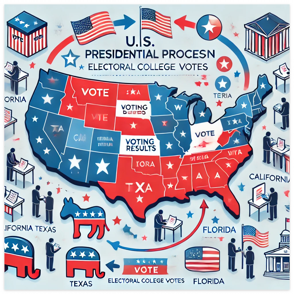 - 대선에서 일반 투표가 끝난 후, 선거인단은 12월에 각 주의 수도에서 모여 공식적인 투표를 진행합니다. 이때 각 주에서 선출된 선거인단은 그 주의 승리한 후보에게 투표를 합니다. 이후 1월에 의회에서 선거인단의 투표 결과를 인증하는 과정을 거쳐 대통령이 공식적으로 확정됩니다.